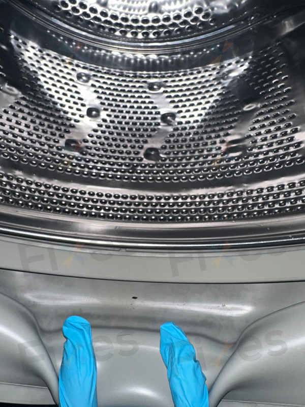 清洗專員到場後,首先使用內窺鏡檢查洗衣機內部的情況。內窺鏡畫面顯示,洗衣機內部確實積聚了不少污垢,尤其是內筒的邊緣位置,都藏有一定程度的污漬。門膠邊的情況同樣不容樂觀,內側有明顯的污垢痕跡。