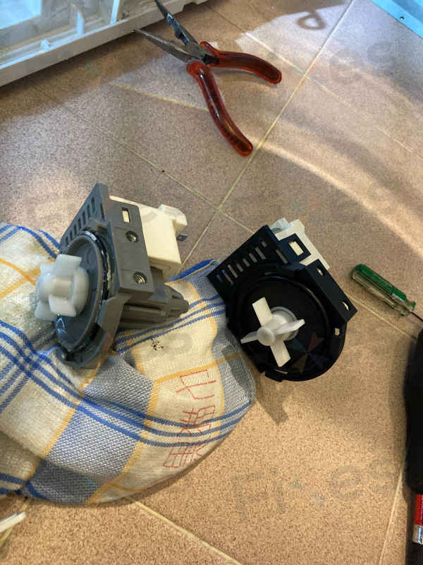 當客人聽到這裡時,臉上的表情顯然舒緩了不少,尤其是當他看到師傅即場更換排水泵,並成功進行測試時,他的喜悅更是難以言表。雖然這部洗衣機的排水泵更換涉及的步驟較多,而且現場的環境較為狹窄,但兵團師傅靠著經驗和技術,成功地完成了維修工作。