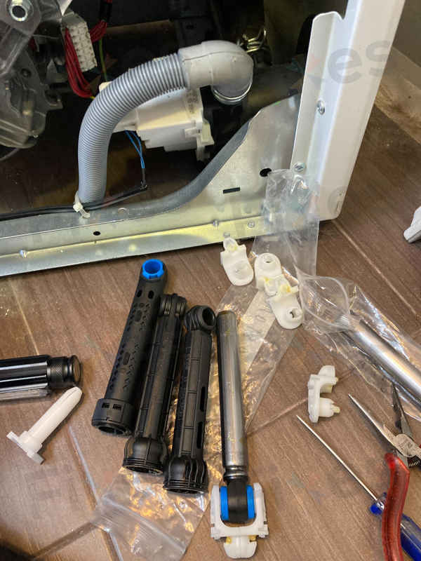 兵團師傅上門之後,馬上展開詳細檢查。發現呢部洗衣機嘅滾筒下墜力和避震力量已經喪失,形成滾筒在有重力壓到時會像打籃球一樣彈來彈去。很明顯,避震器已經出現問題,需要更換。🔍