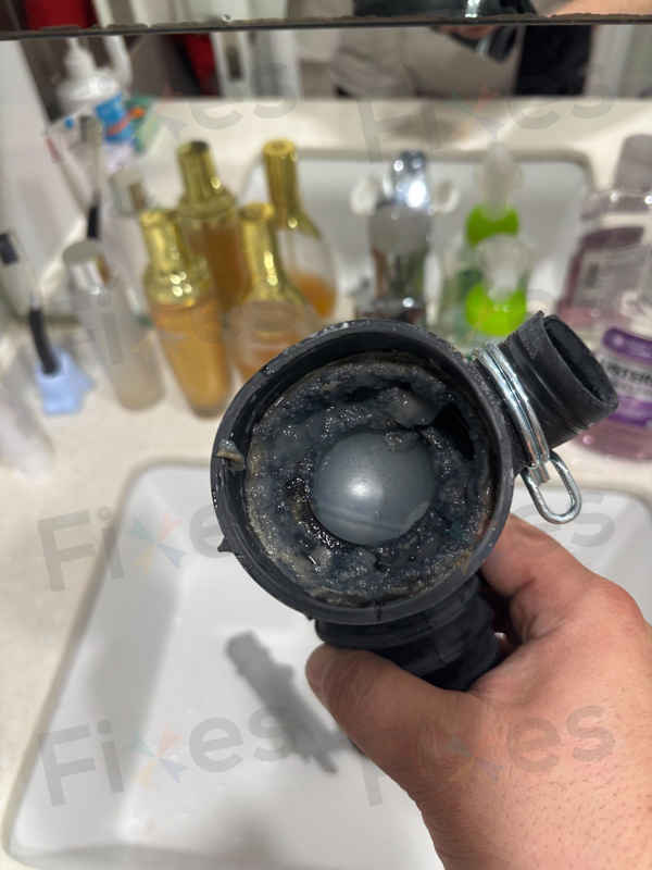 一拆開缸底喉,眼前的景象令人吃驚。無論是缸底喉、氣喉還是排水喉,裡頭都堆滿了各種異物,看起來就像洗衣機的消化系統被堵住了。師傅問過客人,才知道平時有用柔順劑的習慣。原來這些殘留,正是洗不走的柔順劑和洗衣液積聚出來的,長期累積下來,讓排水越來越慢,最終觸發了U11。