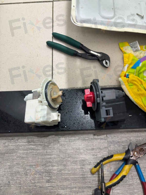 這種情形下,單靠外部檢查根本看不出來,還得細心拆洗。師傅逐一將所有喉管,包括缸底喉、氣喉、排水喉徹底清理,確保沒有殘留物阻塞。又檢查到排水泵已經有明顯老化跡象,於是建議客人一併更換新的排水泵。這樣,排水才可以回復暢順,不再讓衣服泡在水裡半天。